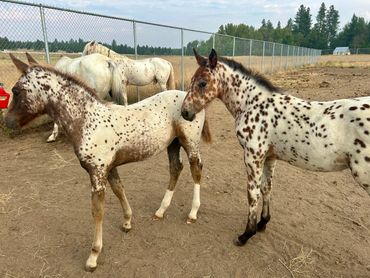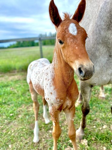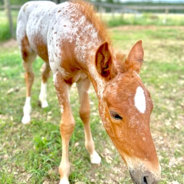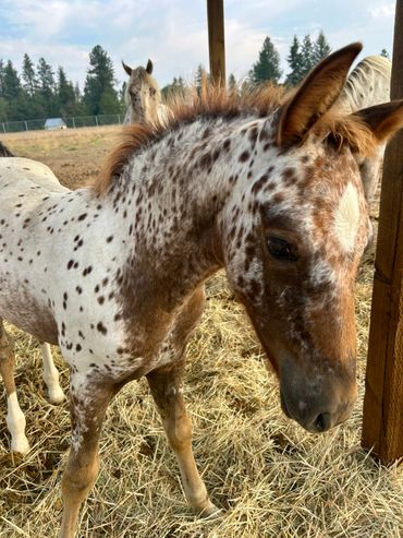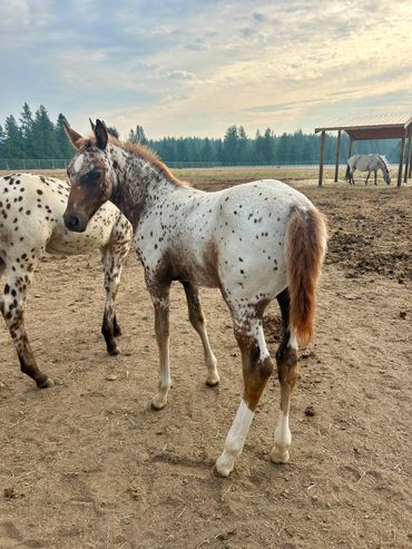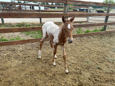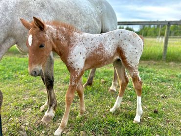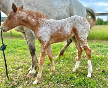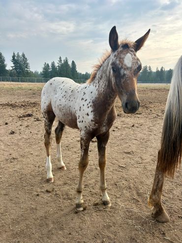 A/a, e/e, LP/n, PATN1/n. Beautiful Red Leopard Filly out of our Stallion Rainfire. She is sweet, sassy and forward. She will make a lovely riding horse, endurance prospect or foundation broodmare. If you like our stallion
