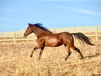 2018 solid bay mare, lp/lp, A/A, E/e, PATN1/PATN1, DMRT3 carrier. Green Broke to ride. Will be used for endurace in future seasons. Confirmed in Foal to Neemeepoos Rainfire for a 2024 foal.