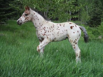 Neemeepoos Rainfire x Neemeepoos Prarie Rose Beautiful Red Leopard filly by our stallion Neemeepoos Rainfire. A/a, e/e, LP/n, PATN1/n This filly is striking and sweet. She is going to be a phenomenal riding horse! She will be smooth, confident, and easy to train.